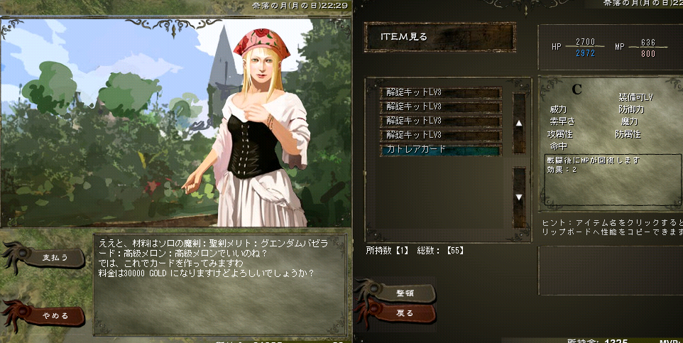 これ以外のドロップとハント品は売り払って収益50000Gくらい